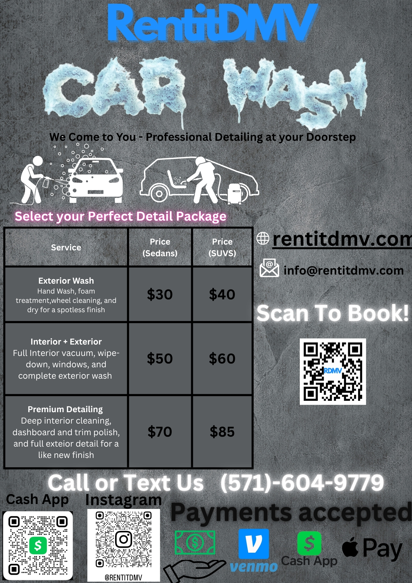 "Needed a last-minute detail before a weekend trip, and RentItDMV came through. They were fast, efficient, and my car looks fantastic. Will definitely book again!"